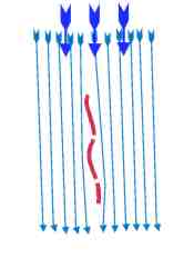 es steht senkrecht in der sich bewegenden Luft, die an diesem Profil vorbeiströmt!!